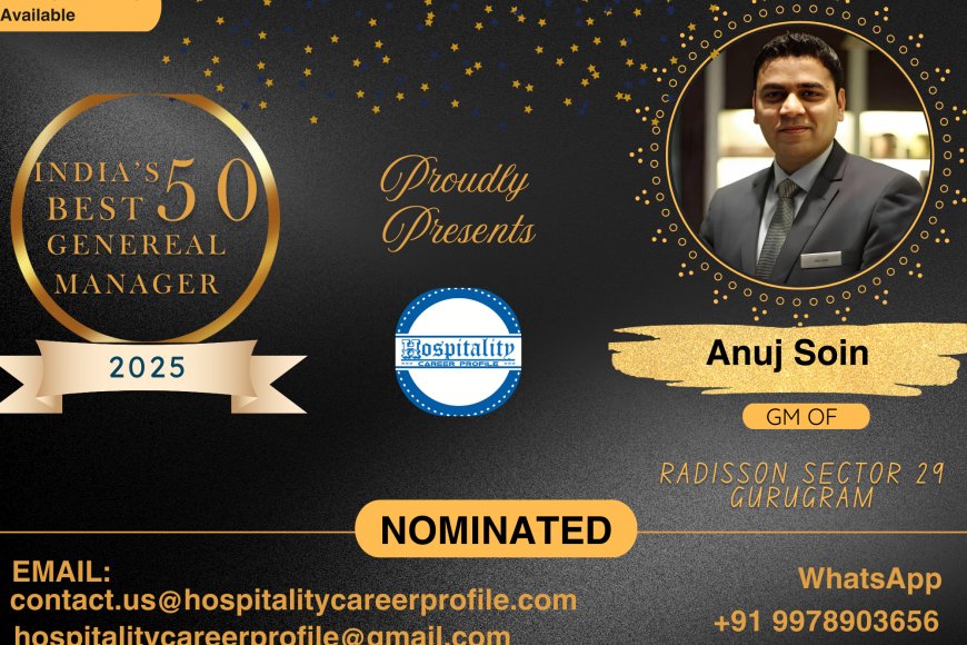Anuj Soin, GM of Radisson Sector 29 Gurugram, has been nominated for India’s 50 Best General Managers 2025. A leader in luxury hospitality, revenue growth, and guest experience innovation.