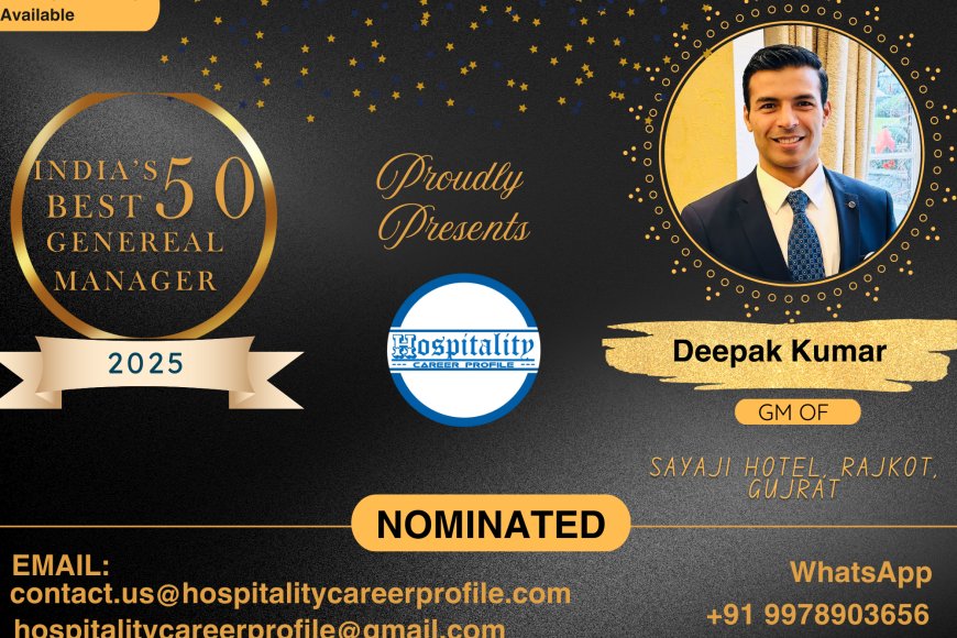 Deepak Kumar, GM of Sayaji Hotel, Rajkot, has been nominated for India’s 50 Best General Managers 2025. A leader in luxury hospitality, revenue growth, and guest service excellence.