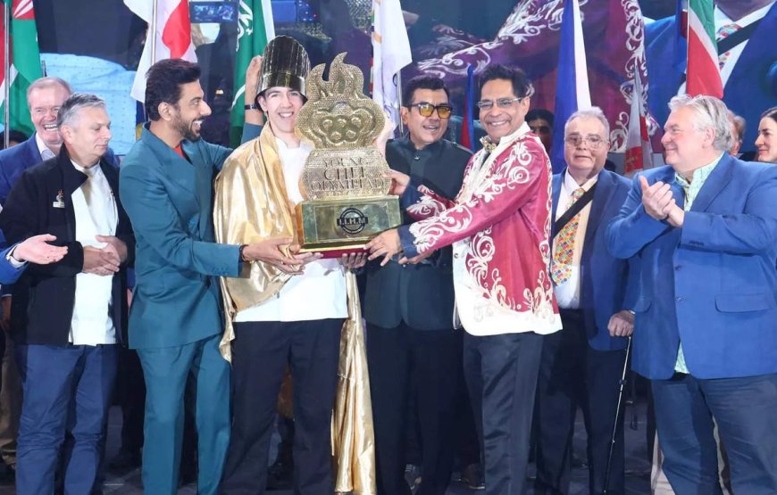 (L to R) England mentor Christopher Julian Basten (in black jacket); chef Ranveer Brar; Kamran Taylor (England winner of YCO 2025); chef Sanjeev Kapoor; Suborno Bose; David Foskett,OBE; and chef Andrew Mackenzie at the finale of the Young Chef Olympiad 2025 in Kolkata recently.The Young Chef’s Olympiad (YCO) concluded recently with Kamran Taylor of England winning the Gold for this edition of the competition.