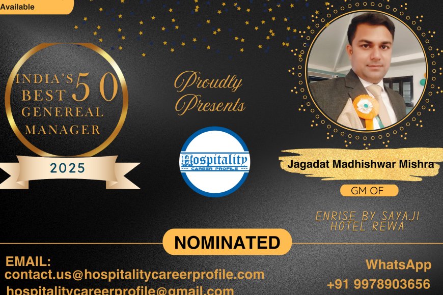 Jagadat Madhishwar Mishra, GM of Enrise by Sayaji Hotel Rewa, has been nominated for India’s 50 Best General Managers 2025. A leader in hospitality management, business growth, and guest service excellence.